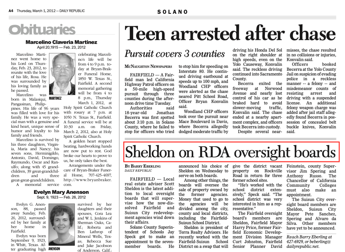 Daily Republic- Sheldon On RDA Oversight Boards