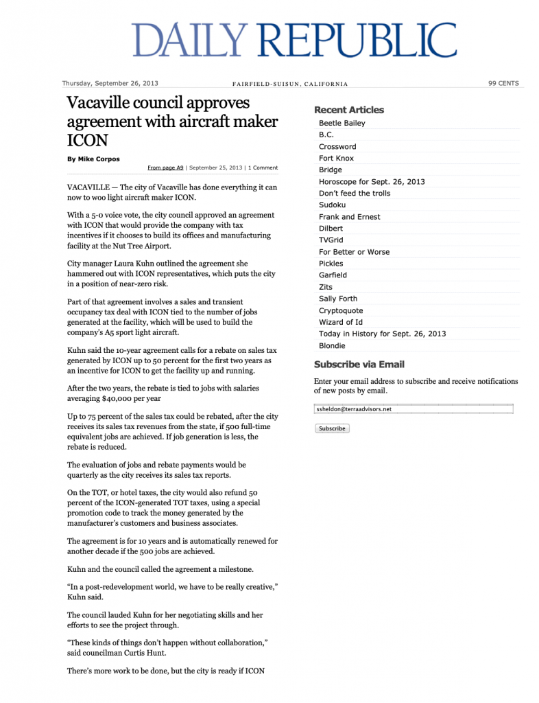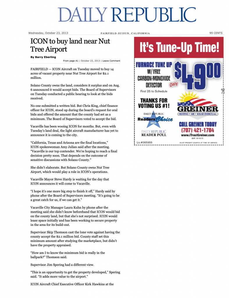 admin2013-09-26 00:00:052022-09-19 16:34:06Daily Republic- Vacaville Council Approves Agreement With Aircraft Maker ICON